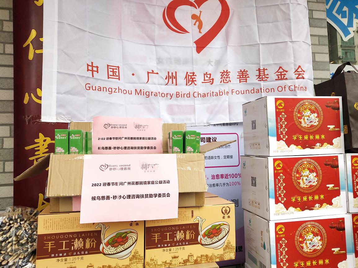 为了让在广州花都务工的困境家庭度过一个欢乐祥和,健康安全的新春佳节,近日,在广州市卫生健康发展和服务管理中心指导下,候鸟慈善基金会·秒秒心理咨询扶贫助学委员会协同花都区政法委、花都区卫生健康局、新华街党工委、新田驻广州花都流动党委及多家社会爱心企业,在花都香岩堂国医馆共同开展“2022年春节期间特殊家庭关怀关爱活动”,现场为70户留穗就地过年困难群众发放节日慰问品。