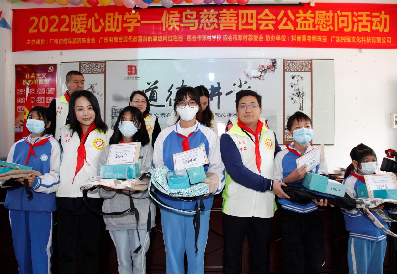 2022年,爱心企业大业信托有限责任公司协同候鸟慈善基金会及爱心人士们,走进四会市贞山街道邓村学校,进行公益探访。在邓村学校助学捐赠仪式上,大业信托王鹏凯先生和丁玮维女士代表公司为孩子们发放一对一助学慰问金,(20名留守儿童每人2000元/年)合计40000元,帮助减轻孩子们的家庭经济压力。爱从来不会被辜负,相信孩子们在爱心企业的关怀下,一定更加努力学习,以优异成绩回报社会,用知识充实头脑,用智慧改变命运,长大后为振兴家乡、振兴中华贡献自己的力量。