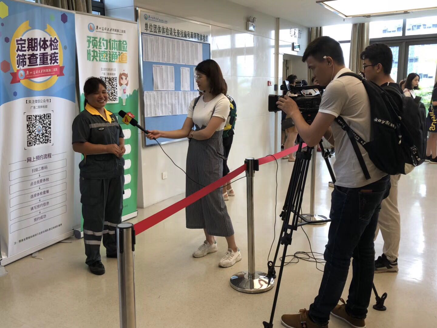 27日上午9点,在广州医科大学附属第二医院9楼体检部,来体检的人们开始排起了长队,这里正在进行“人口流动 健康同行”—2018年广州市流动人口生殖健康优质服务活动。在广州市流动人口计划生育管理办公室安排下,广州市候鸟慈善基金会会同广东电视台来到广医二院对在此体检的流动人口、环卫工人、服务医生进行采访。