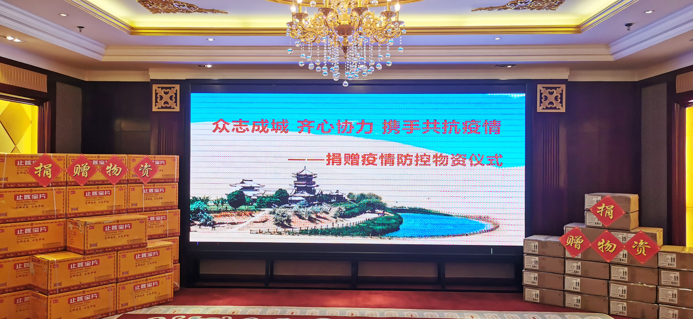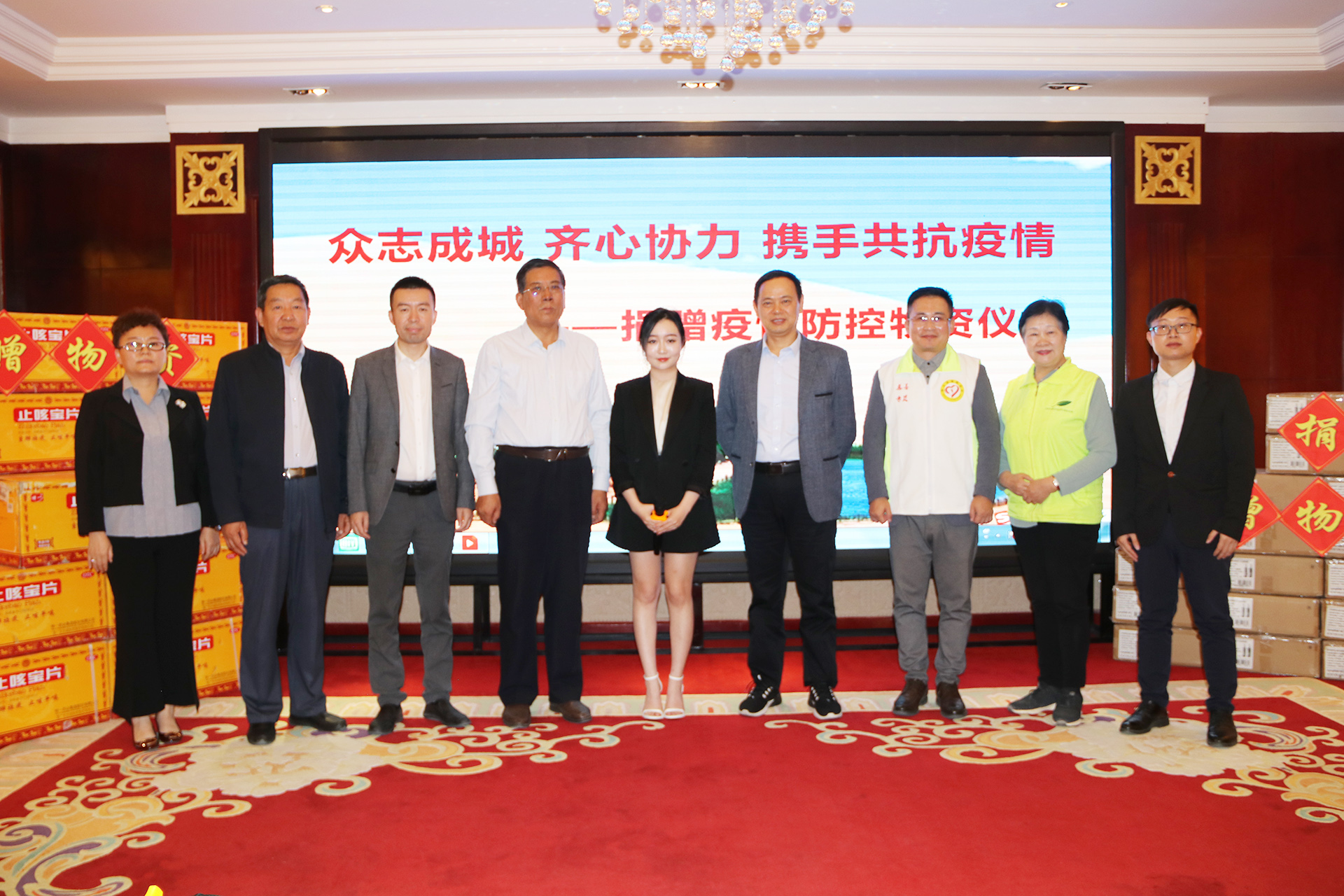 座谈会议程结束后,举行了防疫物资捐赠仪式,爱心企业特一药业集团股份有限公司捐赠止咳宝物资200万元,杭州凡淳品牌管理有限公司捐赠消毒喷雾防疫物资70万元。