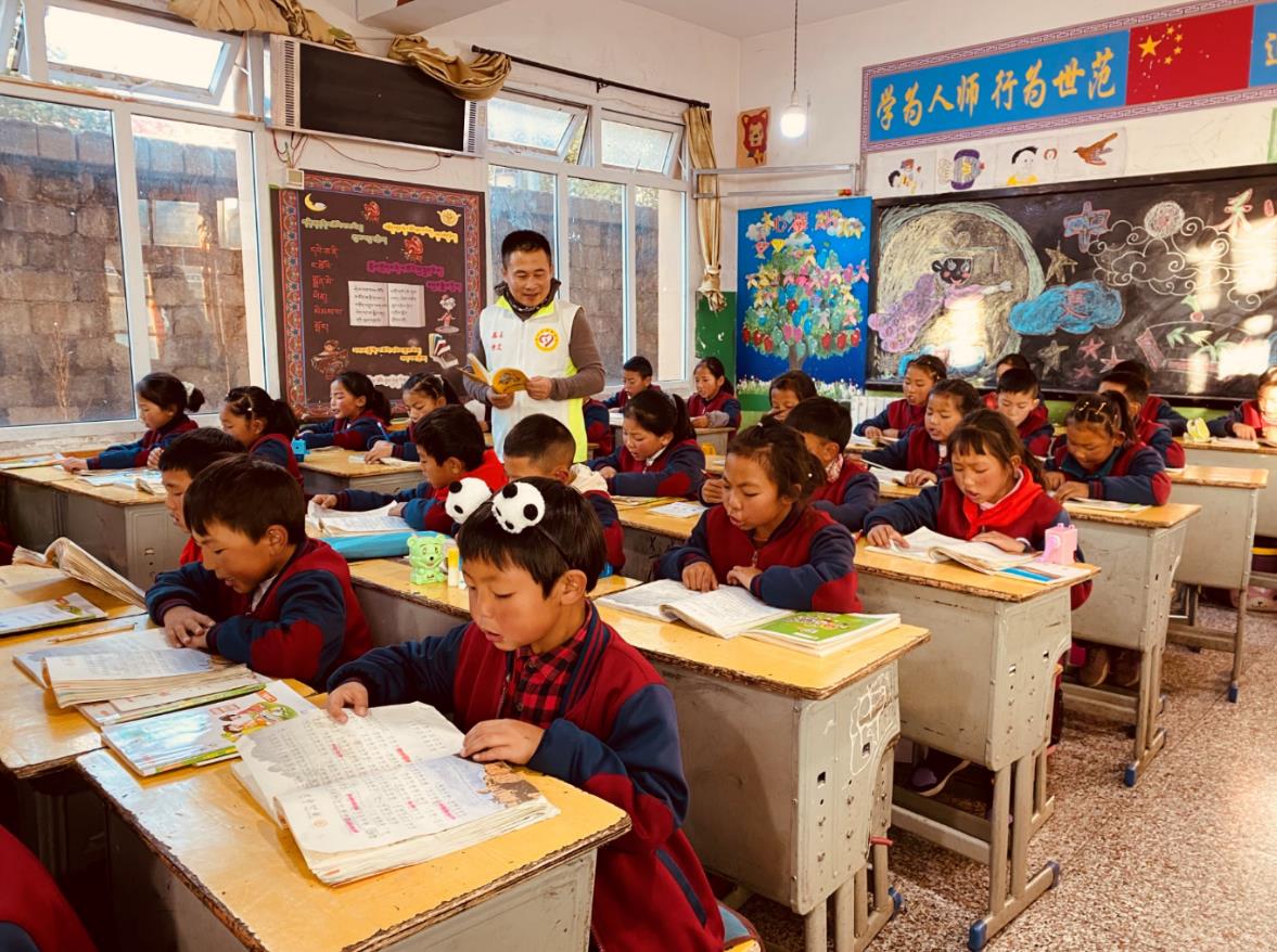 捐赠仪式后,于勇会长和爱心人士们走进了用梅措老师的班级,和孩子们进行了欢乐的互动节目。孩子们认真听课、敢于大声地朗读,看到孩子们的课堂活跃度,让我们感受到他们的活泼,互动效果非常好。