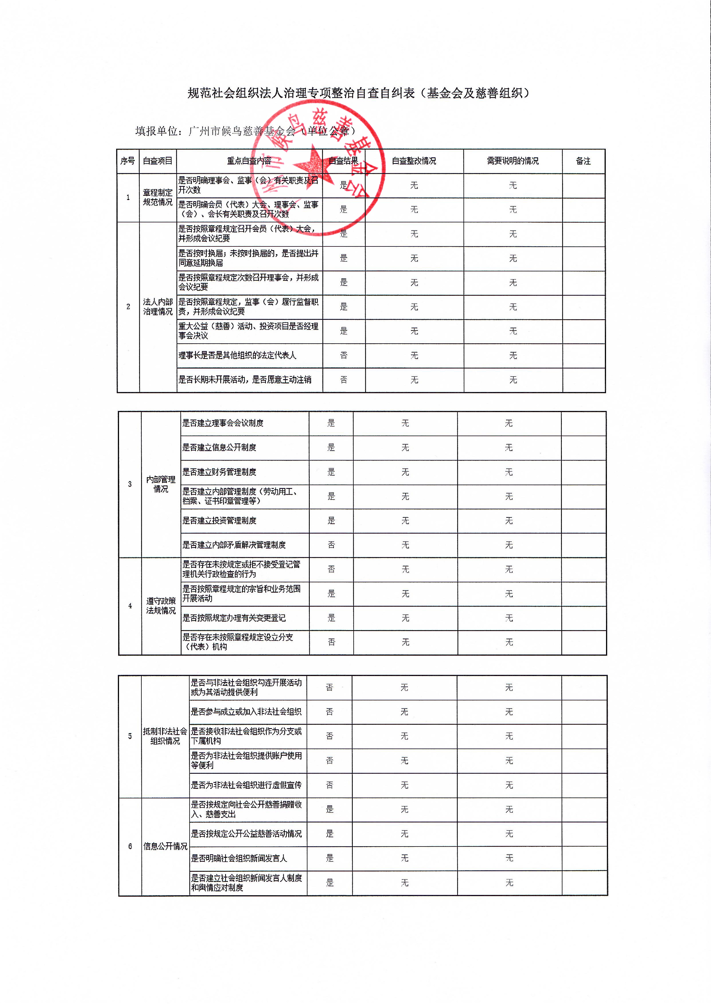 根据市社管局的要求完成本基金会的法人治理专项整治自查自纠工作,对规范法人治理、信息公开、人员管理进行自查自纠表公示如下:
