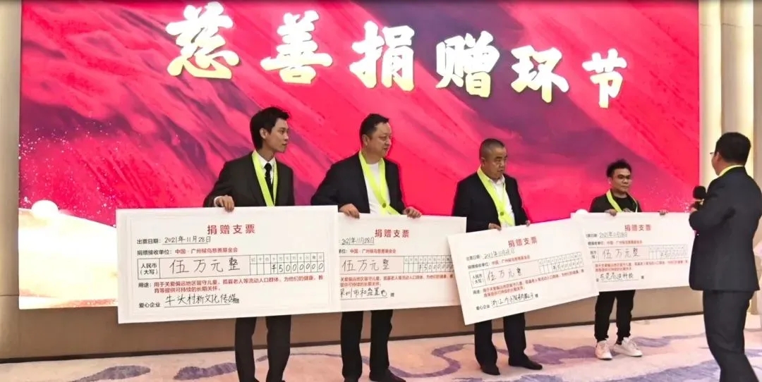 晚会现场,广东牛头村新文化传播有限公司、上海蛙品儿童用品有限公司、深圳市和盛置地有限公司、深圳市京宇盛世房地产开发有限公司、浙江浙润贸易有限公司、东莞高迪科技有限公司等企业和协会均现场捐款捐物。于勇同志代表候鸟慈善基金会接受了捐赠。