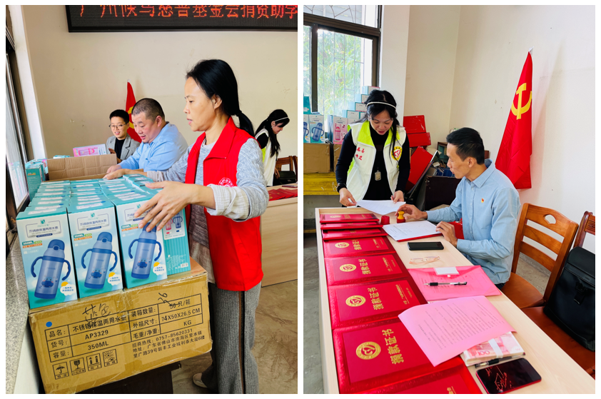 此次公益探访,新禾助学促进会和爱心企业捐赠了保温水壶、防护口罩和益生菌等物资,同时为10名留守儿童,每人发放2000元助学慰问金,共计¥20000元,为孩子带来健康、教育方面长期的可持续性关怀。