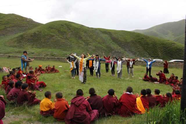 中午到达格雅寺小学.看望87位藏族小学生,进行慈善募捐仪式,优秀学生颁奖典礼,参观校舍,与学校孩子们进行互动表演节目并赠送生活用品。