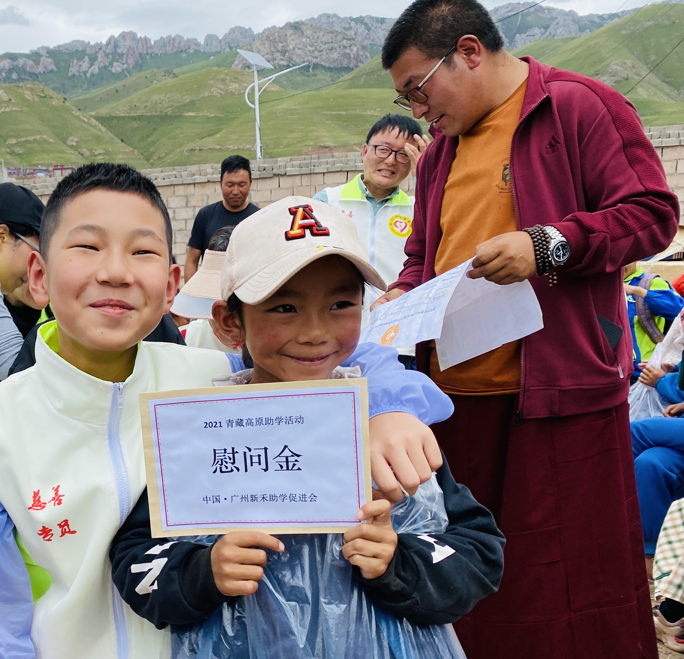 在本次助学活动现场,由爱心人士们分别为优秀学生和老师颁发奖学金和慰问金.