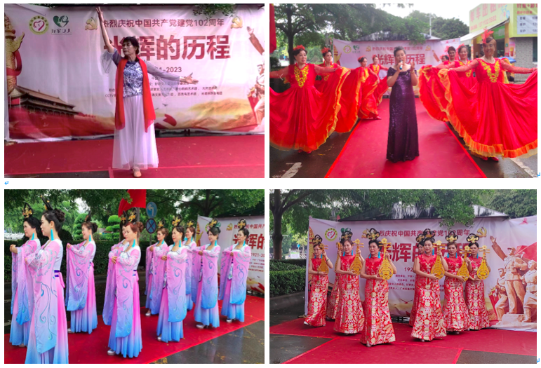 为庆祝中国共产党建党102周年,继承和弘扬党的优良传统,讴歌党的光辉历程,进一步激励党员干部充分发挥党员先锋模范作用,增强基层党组织的凝聚力和战斗力,7月1日14:00~17:00,中国·广州候鸟慈善基金会指导下,好家女人爱国拥军委员会主办了一场“光辉的历程”为主题的文艺汇演活动。