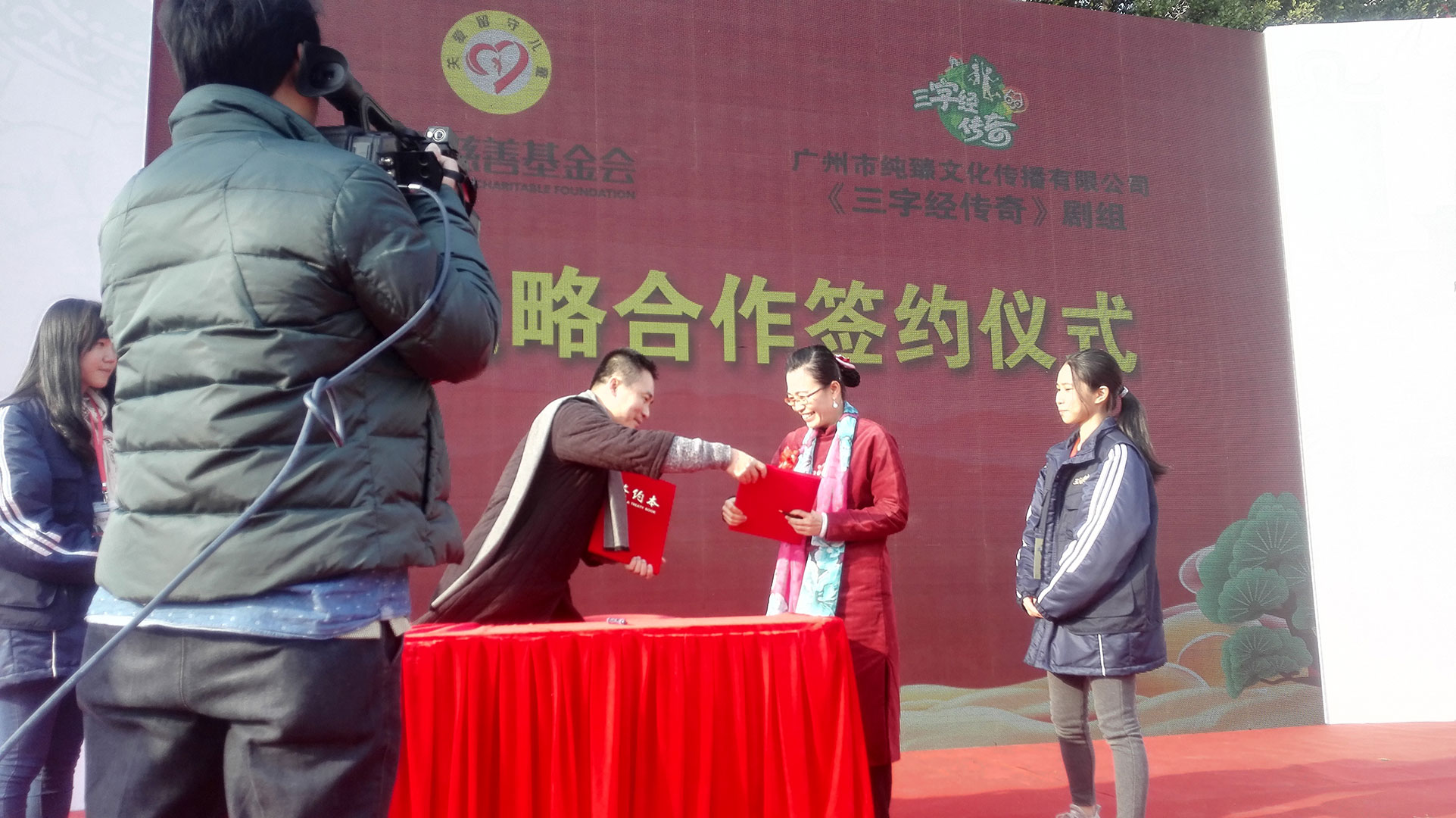 启动仪式上,广州市候鸟慈善基金会于勇理事长与《三字经传奇》情景剧制作人、广州市纯臻文化传播有限公司李娜总经理签约了战略合作,共同为公益、文化、创新探索新的模式。