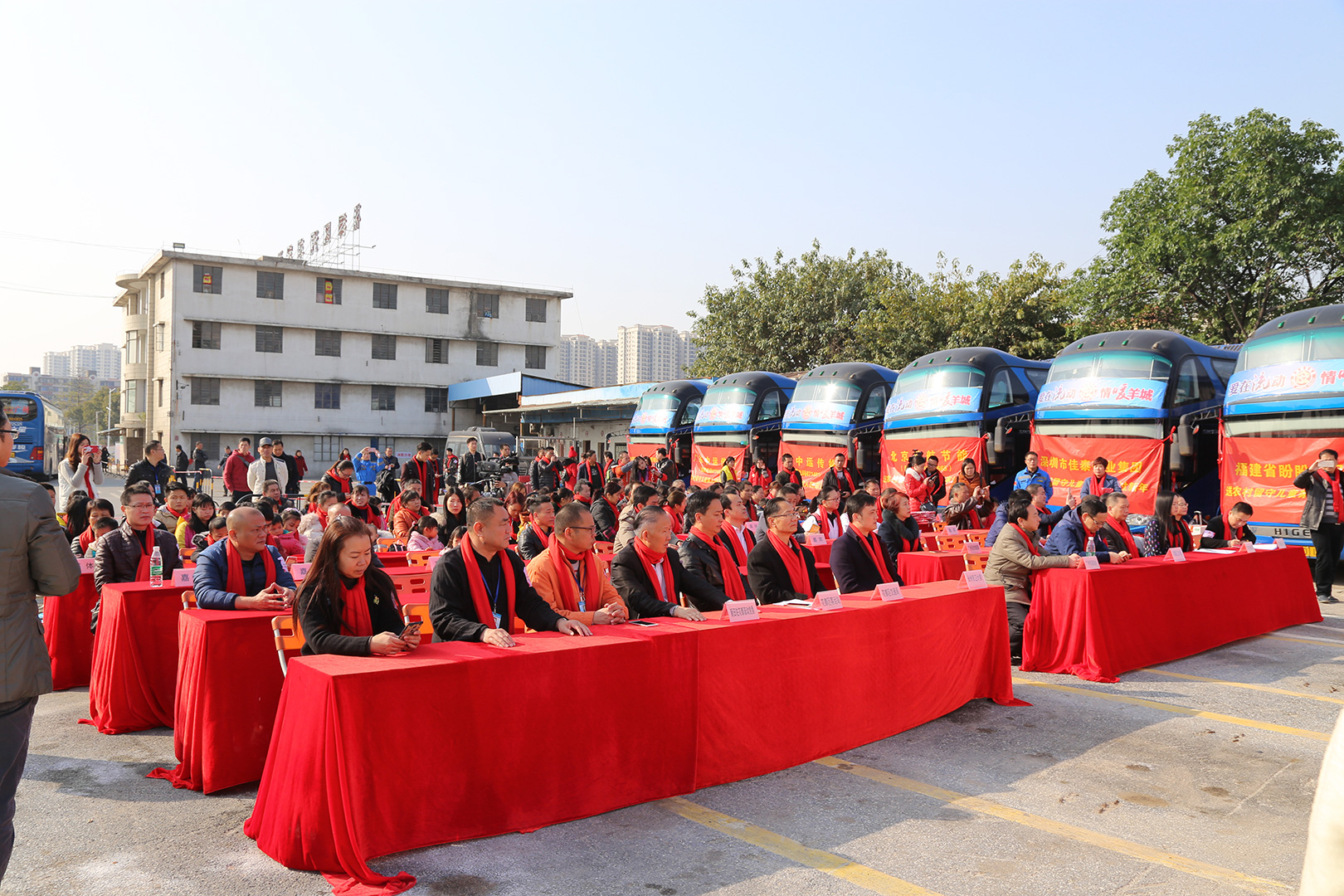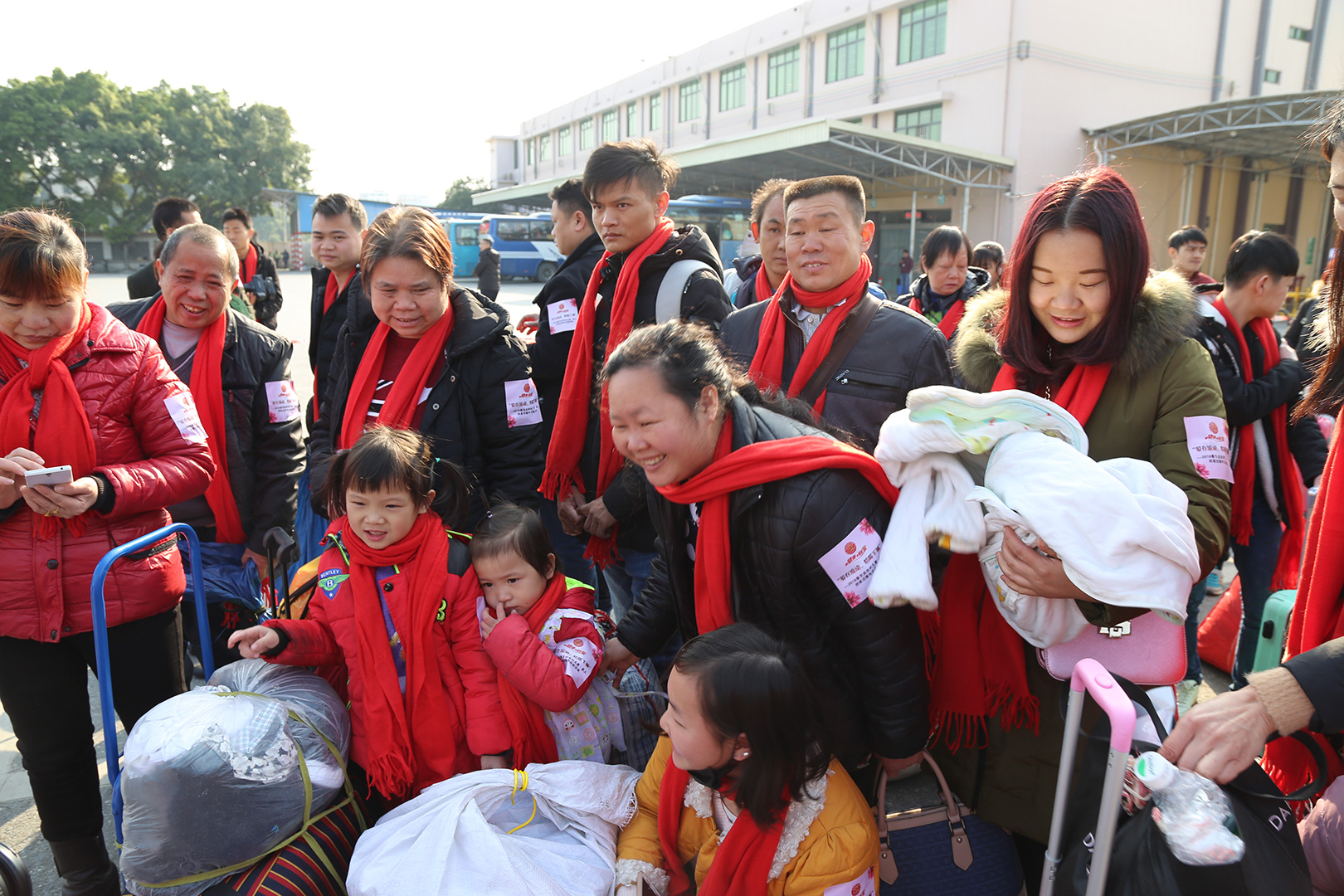 启动仪式圆满结束后,在花都区客运站准时发出6台客运大巴,送新田县300名孩子和父母返乡过年,同时我们为每位乘客精心准备了爱心餐包、饮料、小朋友爱吃的小食品,并安排了医护人员跟车,确保新田的老乡们开心回家、健康回家。